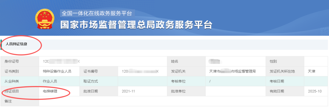第五步:以下为查询的人员持证信息