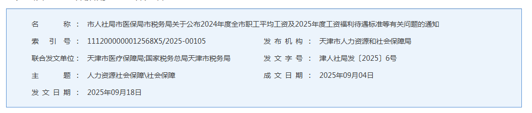 2024年天津市平均工资及2025年度工资又涨了