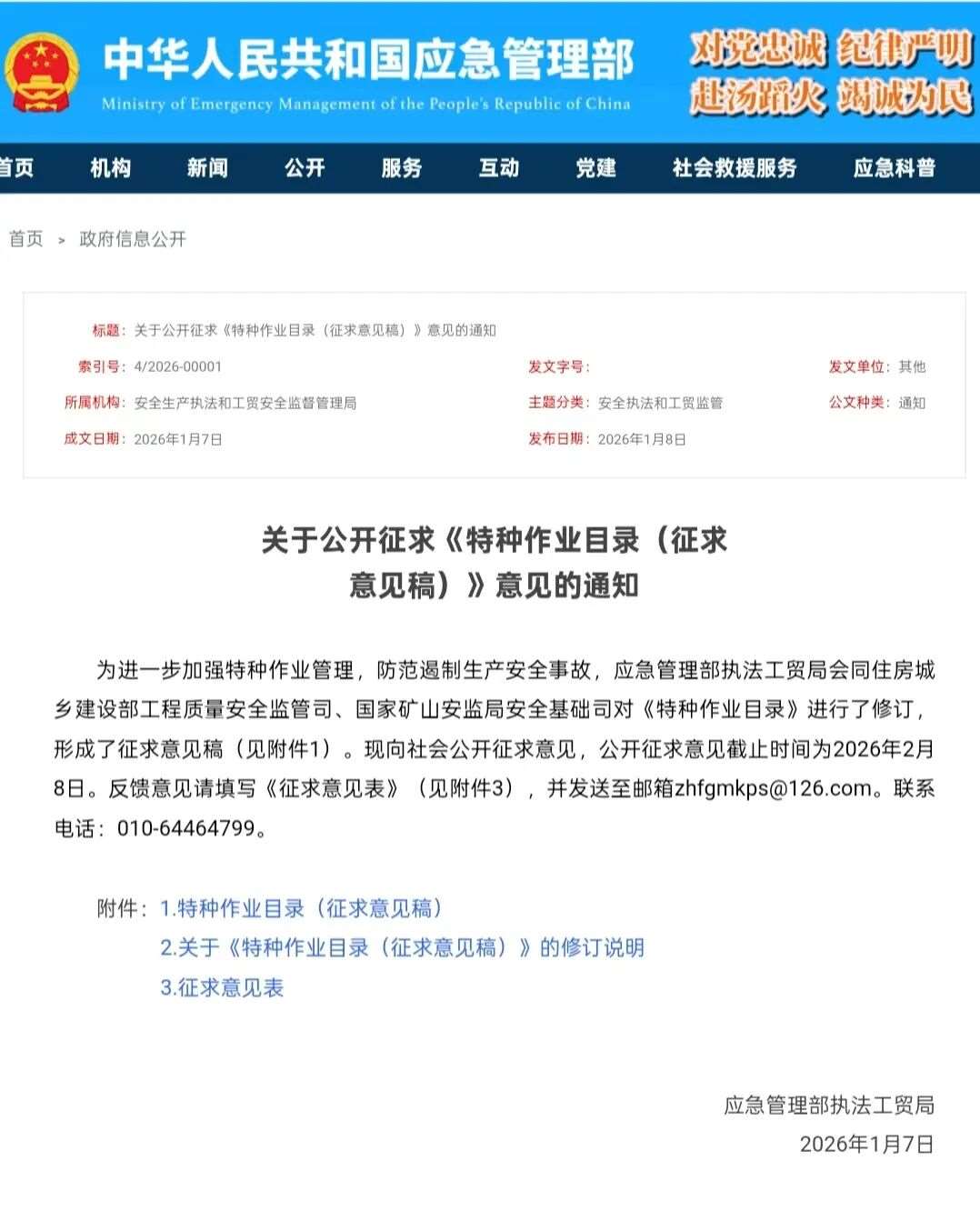 2026年应急管理部关于公开征求特种作业目录征求意见的通知