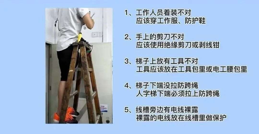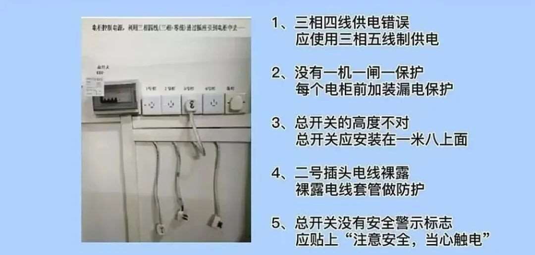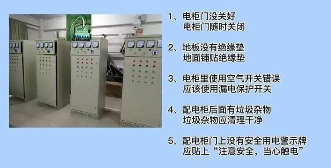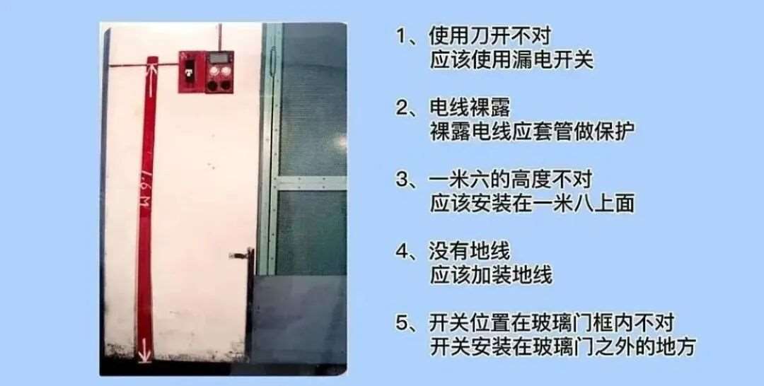 13.电柜里使用空气开关错误,应该使用漏电保护开关。