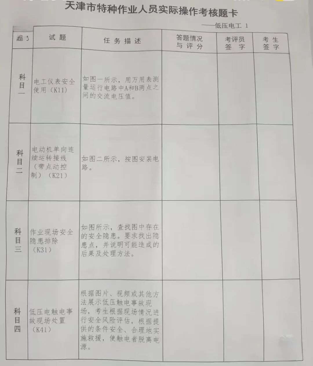 天津低压电工实操考试的内容