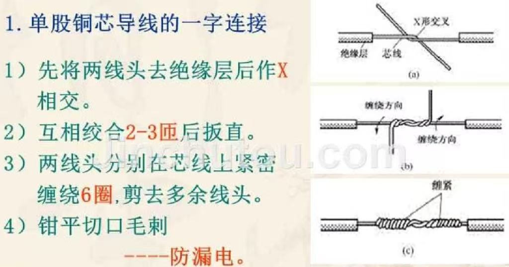平接:互绞3圈,缠绕圈数5~6圈