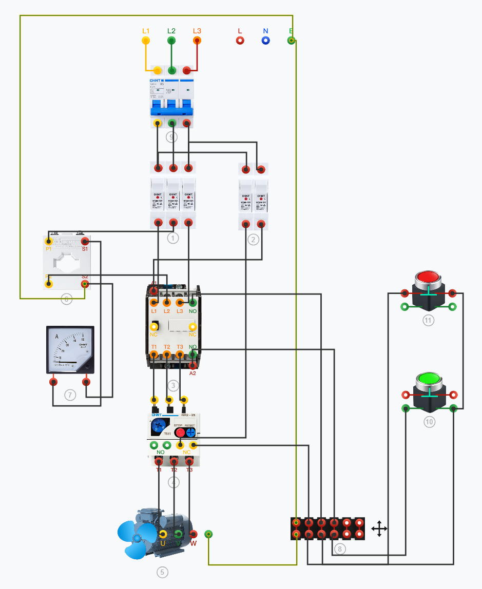 K24带熔断器(断路器)、仪表、电流互感器的电动机运行控制电路接线