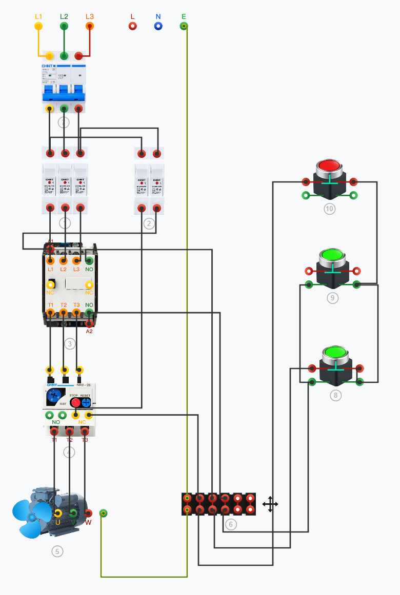 K21电动机单向连续运转接线(带点动控制)