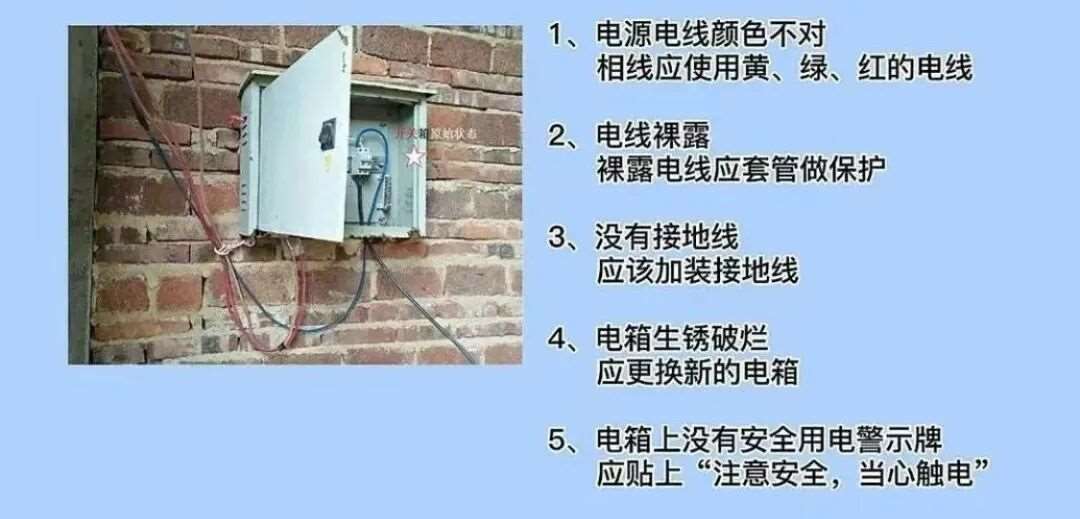 7.配电箱无接地线,应加装地线。