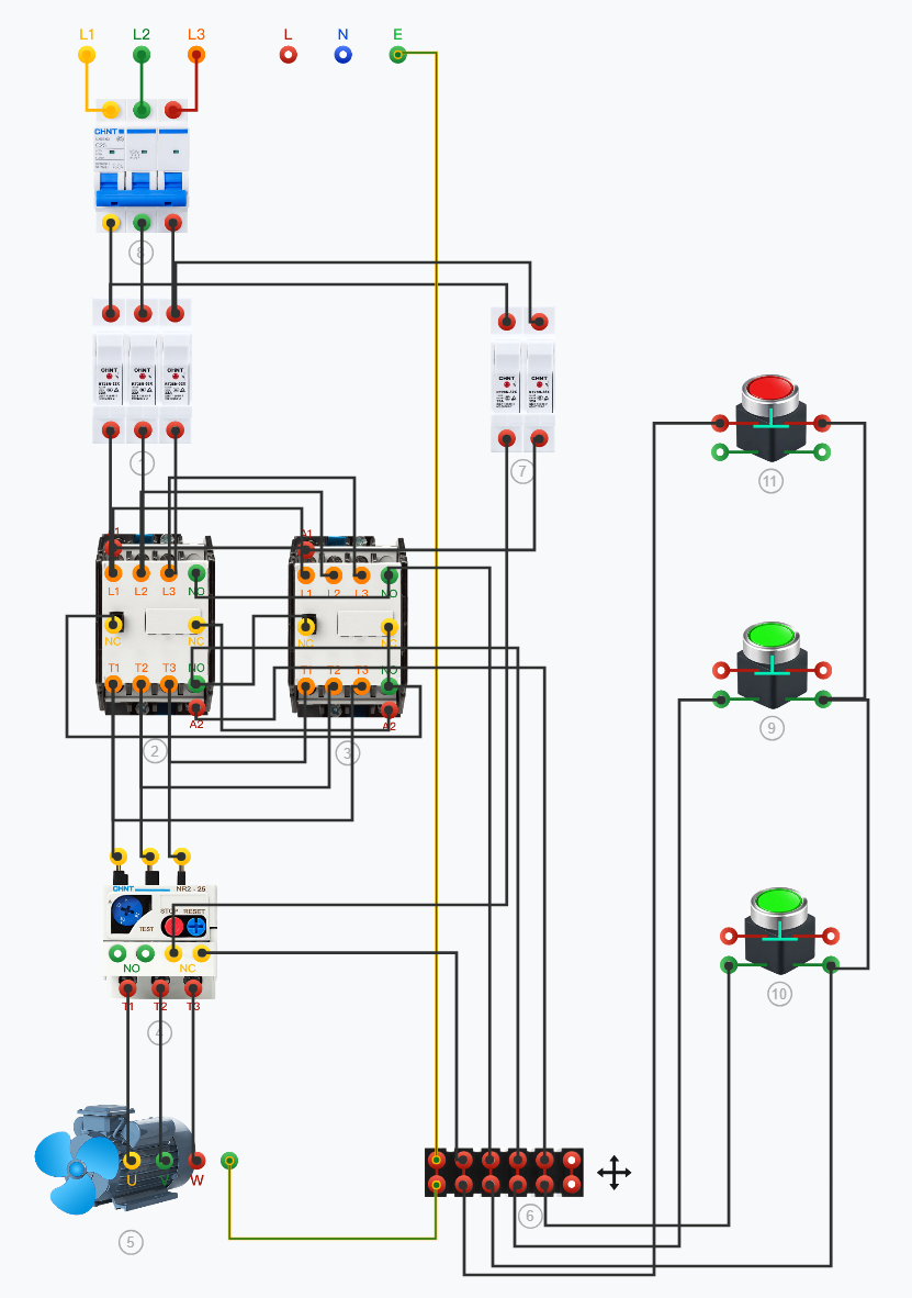K22三相异步电动机正反运行的接线及安全操作