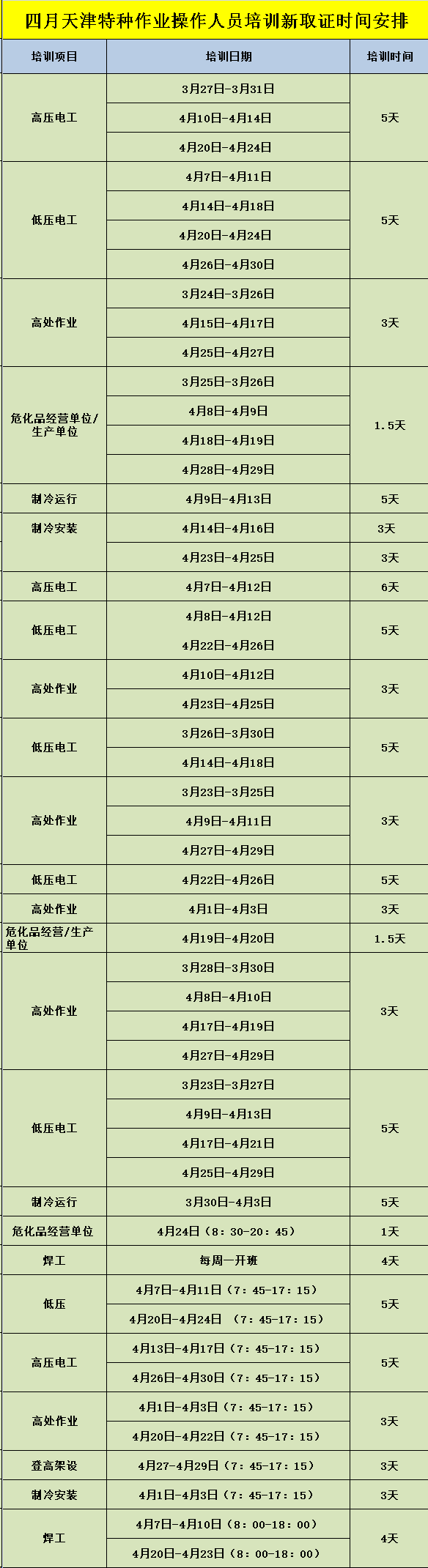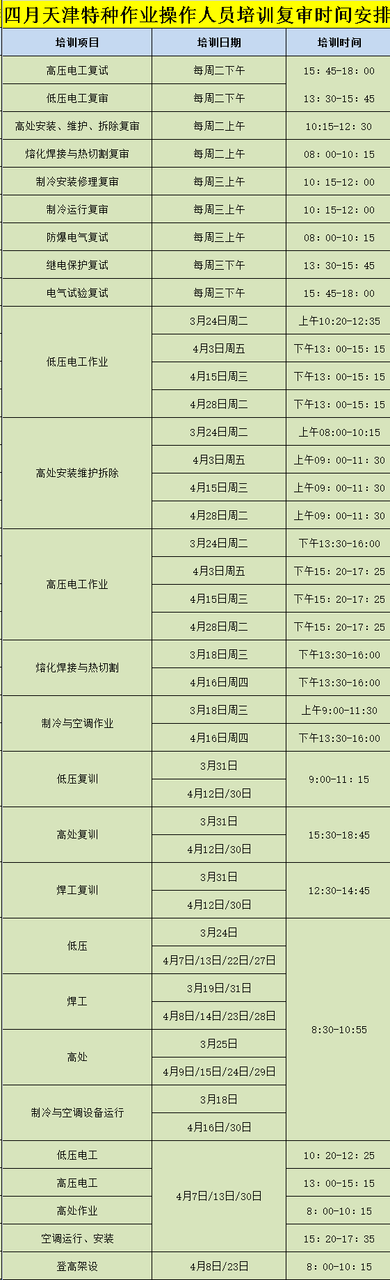 2026年4月天津特种作业操作人员培训时间!